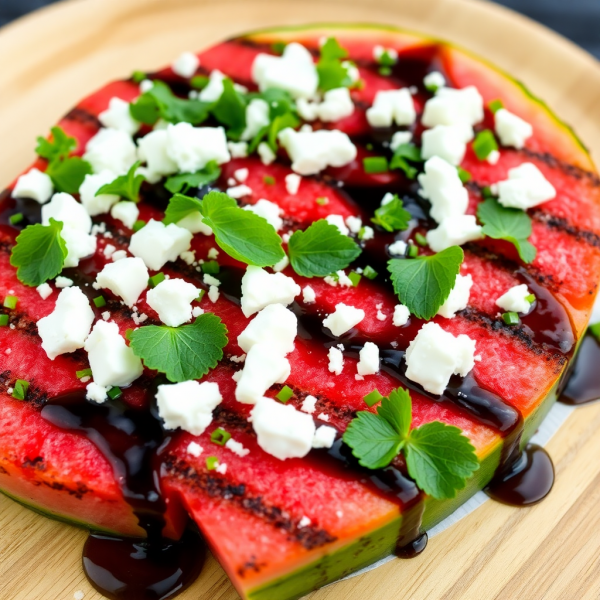 Experience the sweet and savory combination of grilled watermelon, crumbled feta cheese, and fresh mint. This refreshing dish is perfect for a summer meal or as a unique appetizer.