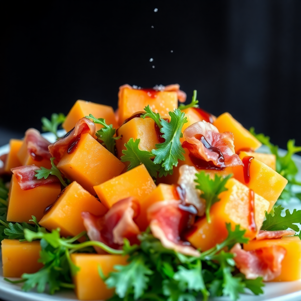 This refreshing cantaloupe and prosciutto salad is a perfect balance of sweet and savory flavors, making it a delightful main dish for a light lunch or dinner. The combination of juicy cantaloupe, salty prosciutto, and fresh arugula creates a simple yet elegant meal.