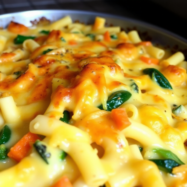 5. Stir in the fresh spinach and cooked pasta, mixing well.