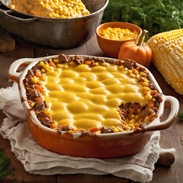 A comforting and cheesy casserole featuring tender beef, sweet corn, and carrots, topped with a golden crust of melted cheese.