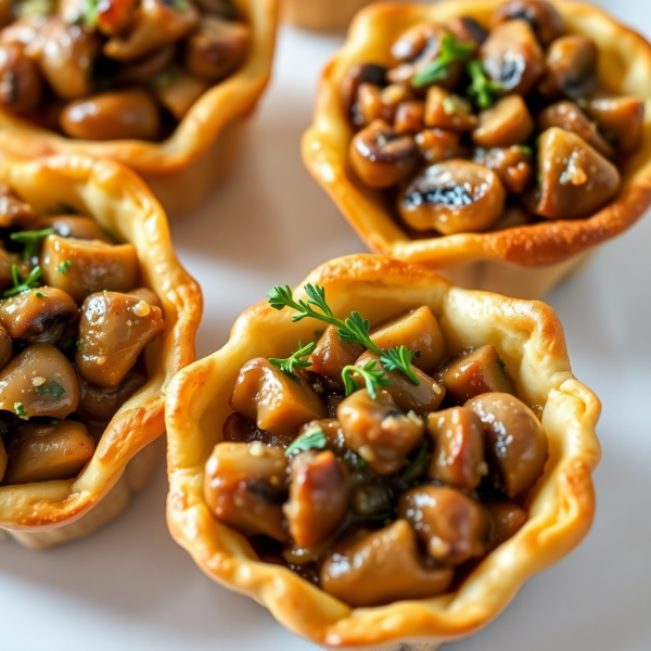 7. Fill each pastry shell with the mushroom ragout and bake for 15-20 minutes or until golden.